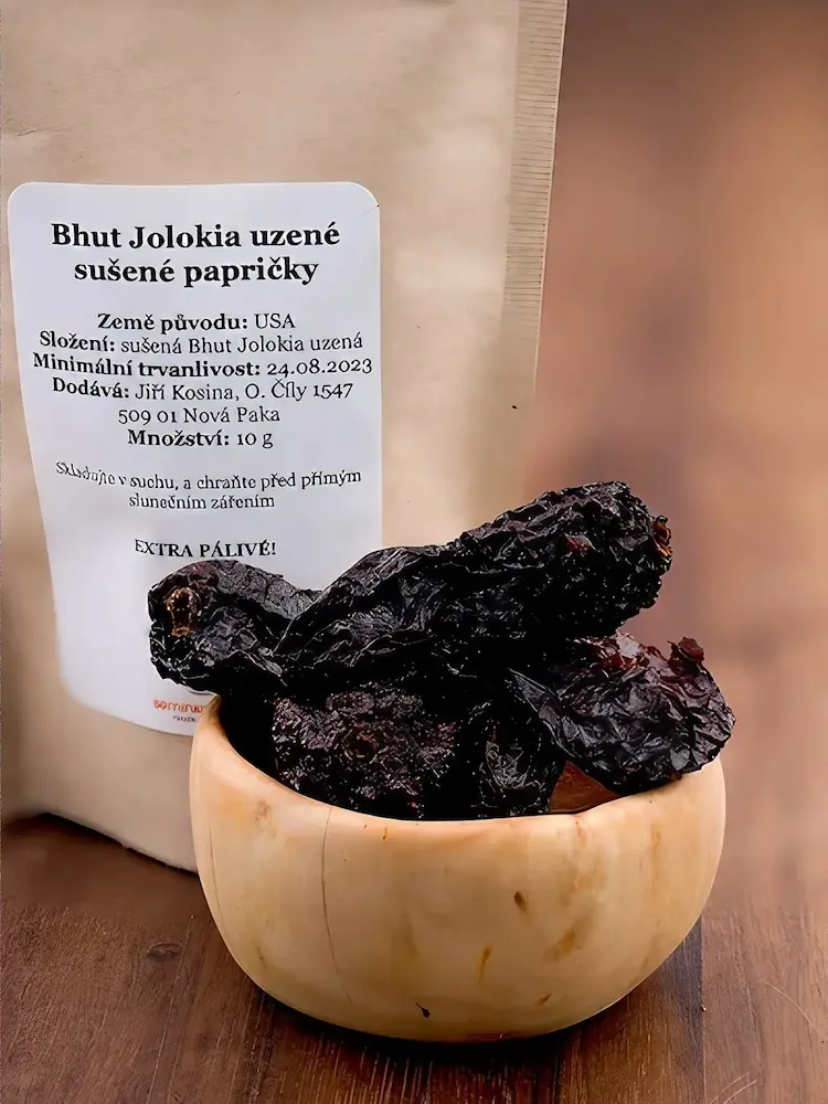 Uzené papričky Bhut Jolokia snoubí pálivost a pronikavé kouřové aroma samotného pekla. Poznejte netradiční vyuzené Bhut Jolokia papričky
