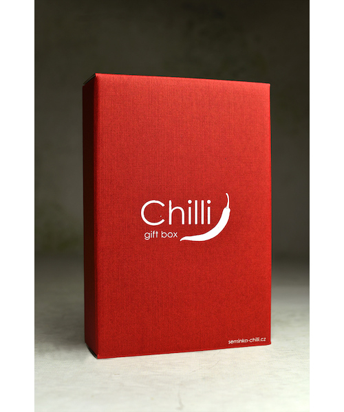 Krabička o rozměrech 17,5 x 12 x 4 cm se stříbrnou ražbou "Chilli gift box".