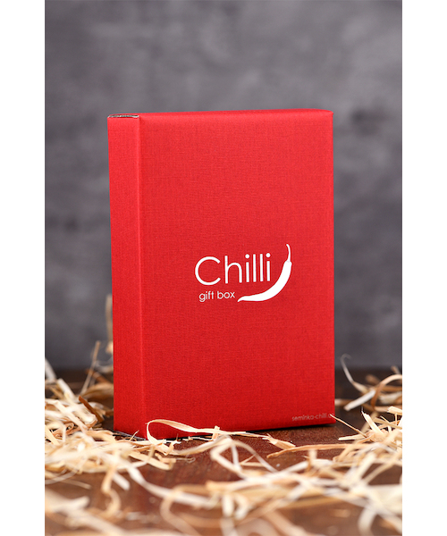 Krabička o rozměrech 17,5 x 12 x 4 cm se stříbrnou ražbou "Chilli gift box".