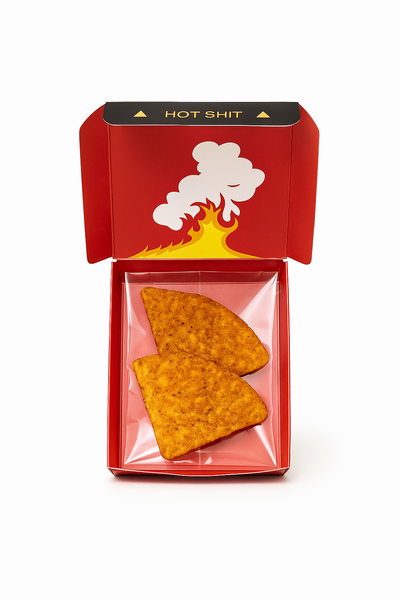 Nejpálivější a 4 gramy vážící tortilla chips! Otestujte se co zvládnete, ukažte ostatním, že jste borci a tuhle extrémní bestii dáte jako malinu! Tak ať to křupe :-) Ale pozor! My nabízíme hned dva lupínky o hmotnosti 4 g a to za bezkonkurenční cenu! A také víte, kdo je výrobcem. Rozhodně vyzkoušejte nejpálivější chips na světě!