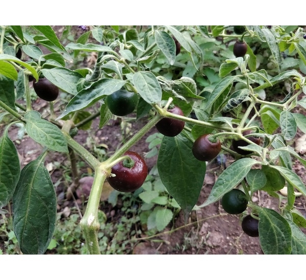 Popis rostliny: až 130 cm vytváří spletivý keřík s hustým zavětvením i blízkým sponem listů. Za vhodných podmínek však keř ztrácí svoji kompaktnost a větve rostou nahodile se značným nárokem na svůj živostní prostor. Listy jsou poměrně malé, zbytnělé vejčitého tvaru. Květ odpovídá dalšímu charakteristickému znaku Capsicum pubescens a totiž purpurovému okvětí a fialovobílími prašníky.