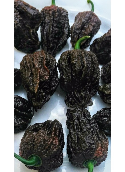 Popis plodu: Papričky Nagabrain Chocolate jsou v průměru 6 cm široké a 4 cm dlouhé. Dozrávají z tmavě zelené do tmavě hnědé, kdy jsou již zcela zralé. Mezi jednoznačné poznávací znaky Nagabrain Chocolate patří zcela unikátní bradavičnatá pokožka. Dalo by se říci, že Nagabrain Chocolate je tak moc ošklivá, až je krásná :D Popravdě z tohoto důvodu jsme ji pěstovali. Je prostě kouzelná!