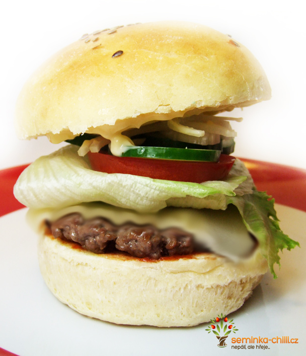 - Krutí hamburger plněný smetanovým sýrem a Habanero Chocolate papričkami