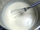Do rozehřátého másla postupně přisypáváme prosátou mouku a důkladně micháme. Do směsi mouky a másla postupně přiléváme studené mléko a metličkou šleháme do hladké směsi. Vaříme zhruba 10 - 15 minut za stálého míchání. Nakonec dochutíme solí, bílým pepřem a strouhaným muškátovým oříškem.
