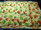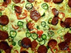 Rajčatovým protlakem (nebo rajčatové pyré na pizzu) utřeným s česnekem, oreganem a bazalkou potřeme pizza těsto. Poté poklademe šunkovým salámem, postrouhaným sýrem (cheddar nebo mozzarella), navrch nakrájíme na půlky cherry rajčátka a proklademe Jalapenos papričkama.