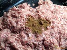Mleté vepřové maso (mleté hovězí maso) smícháme se solí, vejci, utřeným česnekem,