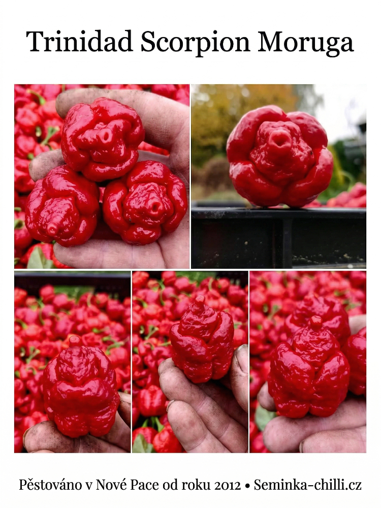 Trinidad Scorpion Moruga je jedinou z nejpálivějších paprik v poslední dekádě, která nemá zápis v Guinnessově knize rekordů a přesto se o ní vědělo díky vědecké činnosti a chilli komunitě. Pěstujeme ji od sezóny 2012 a jako první v České republice jsme nabídli jak osivo, tak chilli omáčku z této legendární odrůdy.