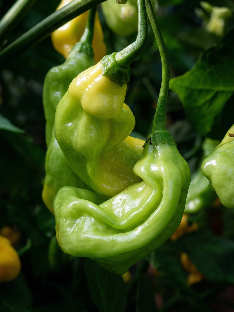 Malaysian Goronong – vzácné malajsijské Habanero s pokrouceným tvarem, dozrávající do žluté až oranžové barvy! Křupavá stěna, sladká chuť s aroma Habanera a příjemný osvěžující pal. Jedna z chuťově nejlepších chilli papriček vůbec.