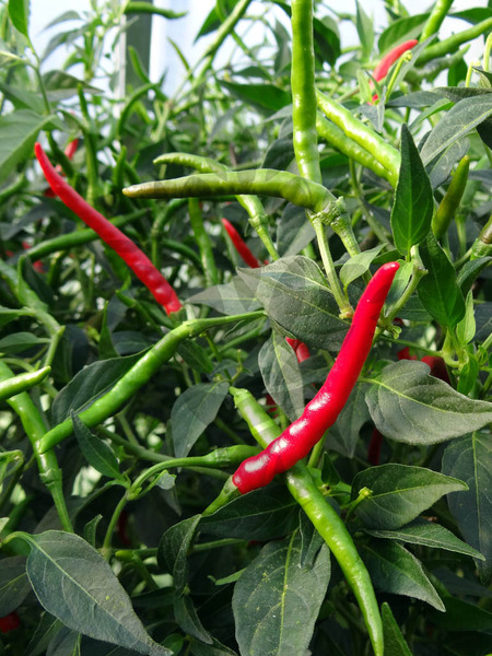 Popis rostliny: až 120 cm vysoká paprika Thai Bangkok je situována jako poněkud úzká samosprašná rostlina. Světlezelené listy do špičky i větve nasazuje řídce. Kvete bíle. Způsobem růstu připomíná některé divoce rostoucí papriky.