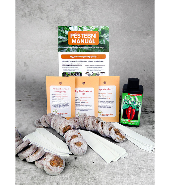 Pěstební set Začínám pěstovat nejpálivější chilli je ideální vstupenkou pro pěstitele, kteří chtějí začít s nejpálivějšími odrůdami součastnosti. Ti obdrží několik odrůd chilli papriček, které velmi dobře reprezentují ty nejvíce pálivé a zázoveň velmi výnosné.